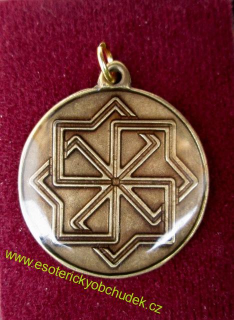 Materiál: zinek, na kterém je galvanicky nanesena vrstva mosazi. Přívěšek je oboustranně opatřen vrstvou průhledného smaltu a je tady vhodný i pro alergiky, jelikož nositel nepřichází do styku s kovem.