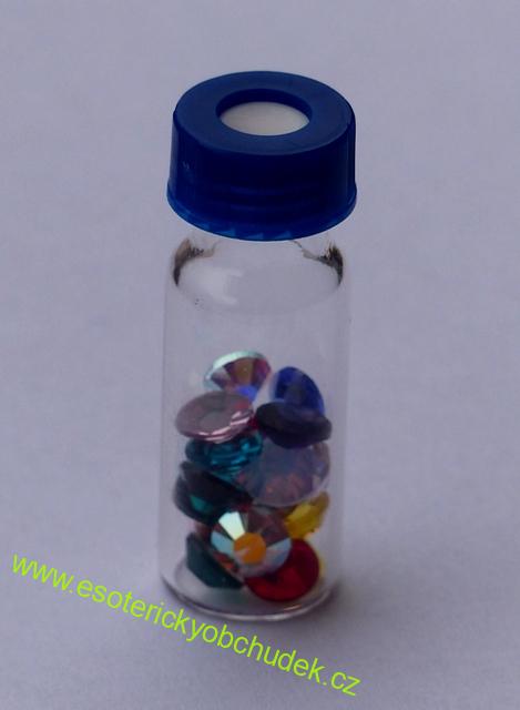 Krystaly určené pro aplikaci na tělo nebo nošení např. v medailonku, průměr krystalu přibližně 4,5 mm.