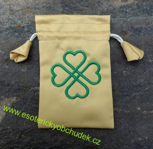 Sáček malý cca 9 x 13 cm s výšivkou KELTSKÝ KŘÍŽ SRDCE - zlatý satén - cena do vyprodání zásobSkladem175 Kč/ ks